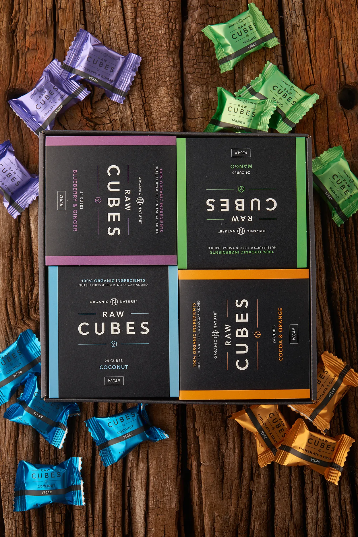 Forkæl dig selv eller én du holder af med en gave, der både smager godt og føles godt. Raw Cubes gaveæsken samler det bedste fra vores univers i én eksklusiv boks, hvor du selv vælger 4 varianter – præcis som du vil have det.