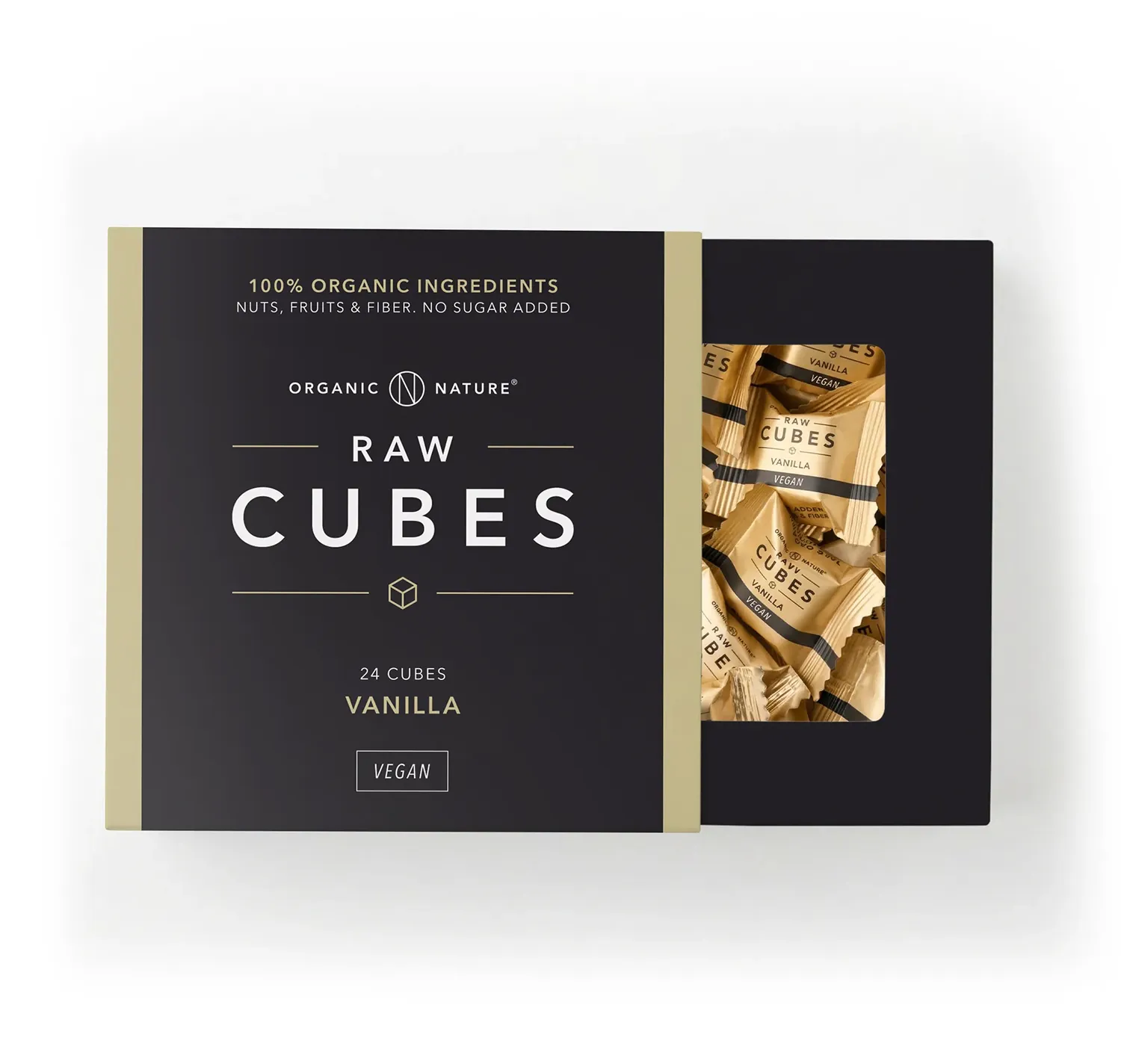 Hver cube er lavet på rene, naturlige ingredienser uden tilsat sukker og unødvendige tilsætningsstoffer. Resultatet er en lækker og sund snack, der giver dig et naturligt energiboost – når som helst på dagen.